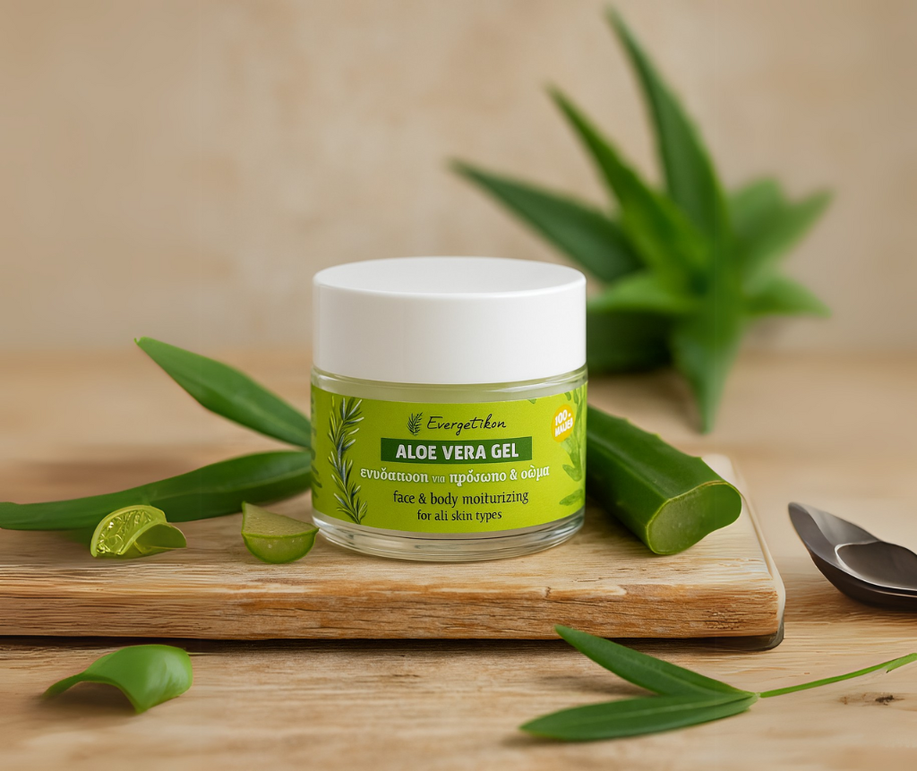 Onze Aloe Vera gel van Evergetikon, met zorgvuldig gewonnen pure aloë vera, wordt handgemaakt in Griekenland zonder schadelijke toevoegingen, voor pure huidverzorging in zijn meest natuurlijke vorm.